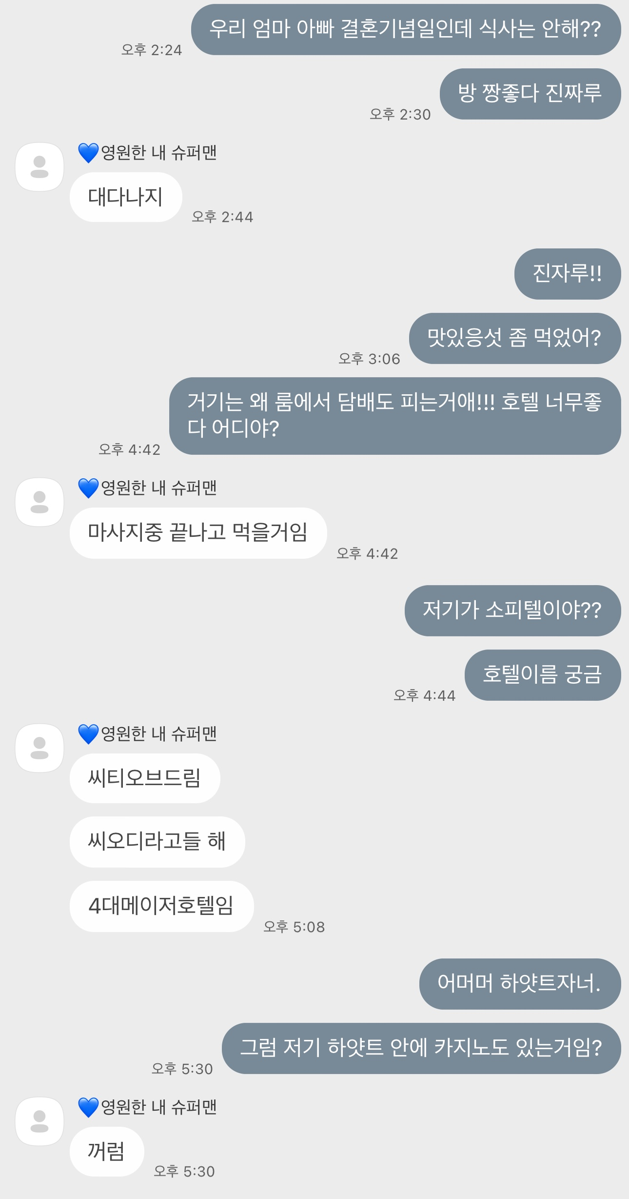 아쉬우니까 예고편으로 아빠 호텔정보 알아내기용 카톡 투척